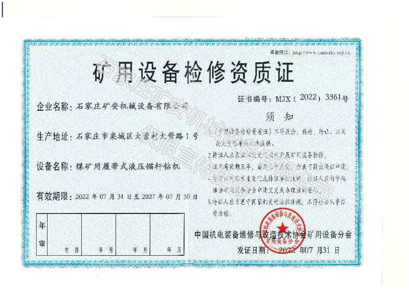 石家莊礦安機(jī)械設(shè)備有限公司成立于2011年3月,公司位于風(fēng)景優(yōu)美、科技發(fā)達(dá)、交通便利的石家莊市欒城區(qū),是一家專注生產(chǎn)煤礦井下支護(hù)機(jī)具(錨桿鉆機(jī))和安全鉆機(jī)(防突,架柱等)及氣動隔膜泵等礦用機(jī)械設(shè)備的********,是國內(nèi)煤礦機(jī)械裝備的生產(chǎn)商和服務(wù)商,根據(jù)用戶需求提供井下適用的鉆機(jī)施工解決方案。公司致力于打造研發(fā)、制造、銷售、服務(wù)為一體的現(xiàn)代化企業(yè),全心全意為煤礦生產(chǎn)保駕護(hù)航。 ? 公司建有裝配車間、機(jī)加車間和調(diào)試車間,擁有嚴(yán)格的質(zhì)量控制體系、先進(jìn)的產(chǎn)品開發(fā)系統(tǒng)、完善的試驗(yàn)檢測設(shè)施、良好的售后服務(wù)保障。先后與中煤科工集團(tuán)沈陽研究院、西安研究院、太原理工大學(xué)、燕山大學(xué)等知名院校建立了緊密的合作關(guān)系。 ? 公司產(chǎn)品主要銷往山西、陜西、山東、內(nèi)蒙古、黑龍江、云南、貴州等七十多個礦區(qū)和地方煤礦,擁有一支成熟的售后技術(shù)團(tuán)隊(duì),并且和中煤集團(tuán)、華電煤業(yè)集團(tuán)、華潤煤業(yè)集團(tuán)、潞安集團(tuán)、山西焦煤、淮北礦業(yè)等國內(nèi)知名企業(yè)達(dá)成長期合作關(guān)系。 ? 公司始終秉持“讓煤礦生產(chǎn)更安全”的發(fā)展使命,力求誠信與創(chuàng)新,追求卓越與完美,深知“實(shí)實(shí)在在、心無旁騖做實(shí)業(yè)”,這才是本分!石家莊礦安機(jī)械設(shè)備有限公司愿與您攜手共進(jìn),共同發(fā)展!為客戶創(chuàng)造價值,提供優(yōu)質(zhì)的產(chǎn)品和*佳的服務(wù)是我們永無止境的理念!